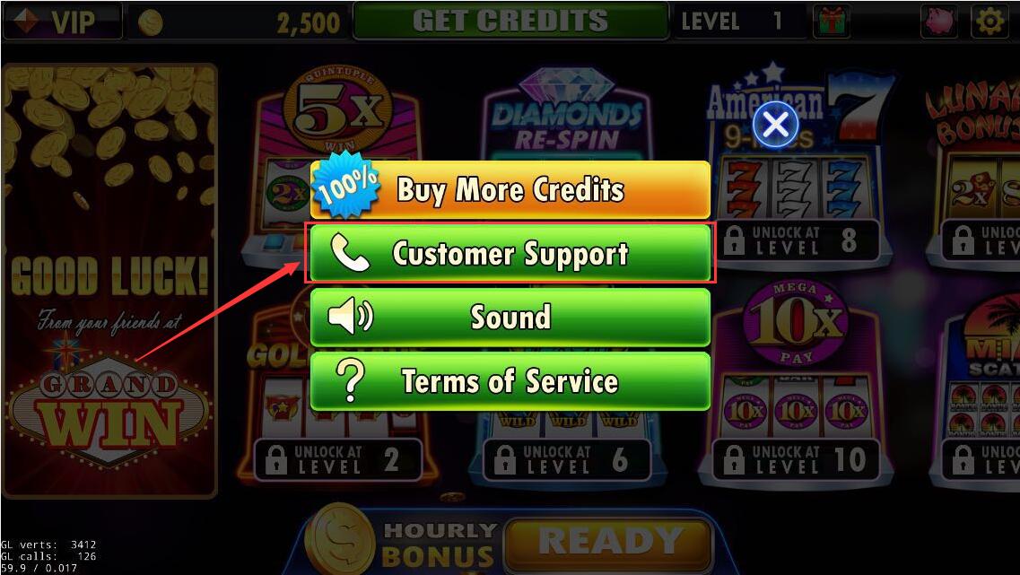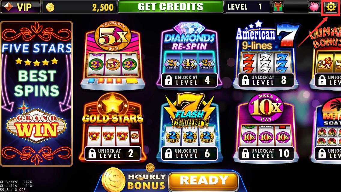 1.Open Vegas Grand Win game on your device and tap Setting icon on the top Right panel